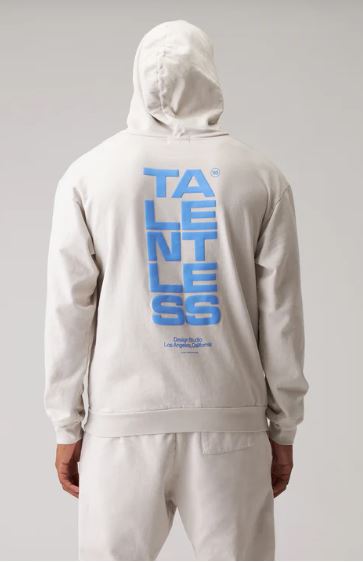 TALENTLESS | MEN’S LIGHTWEIGHT HOODIE – STACK GRAPHIC CEMENT