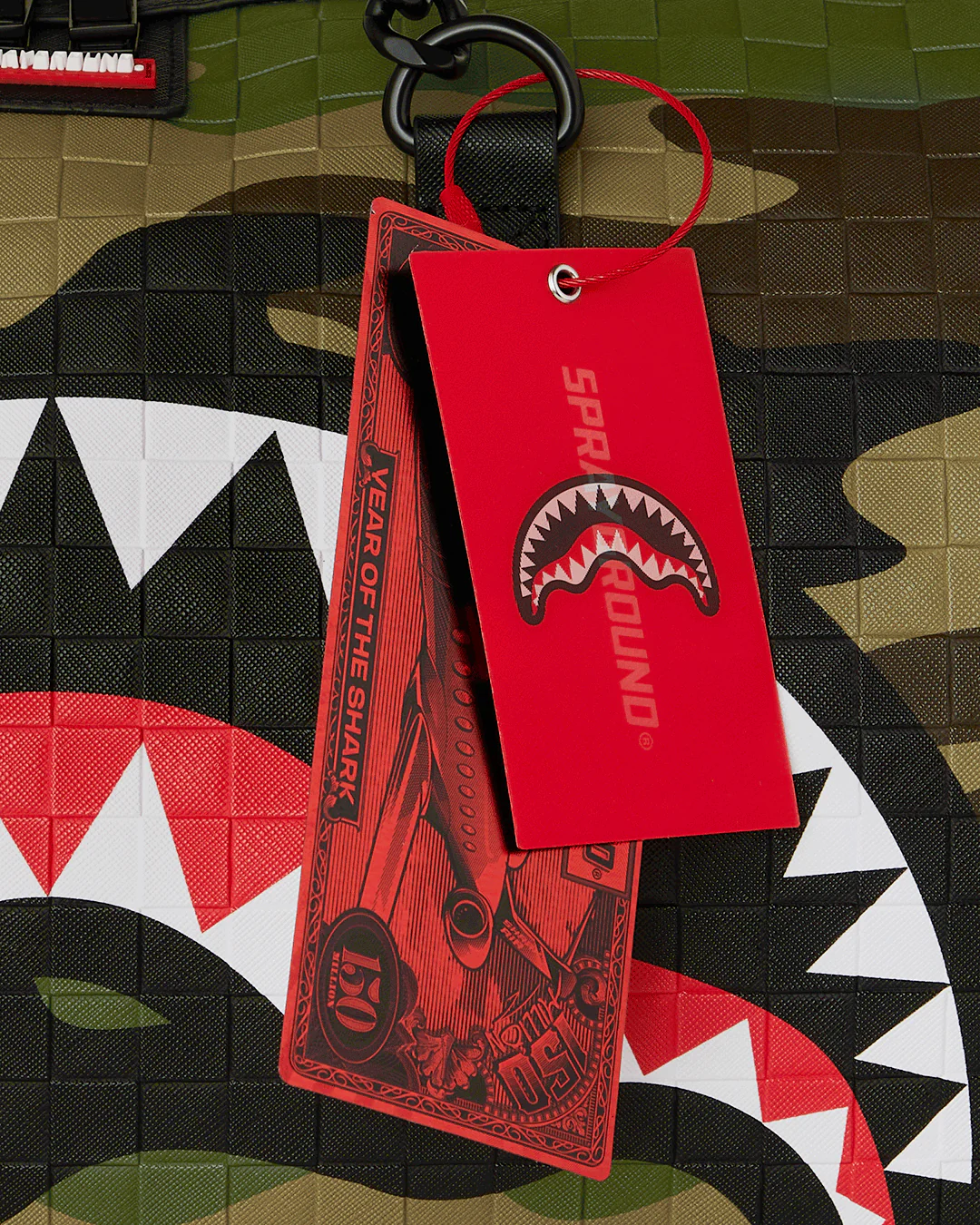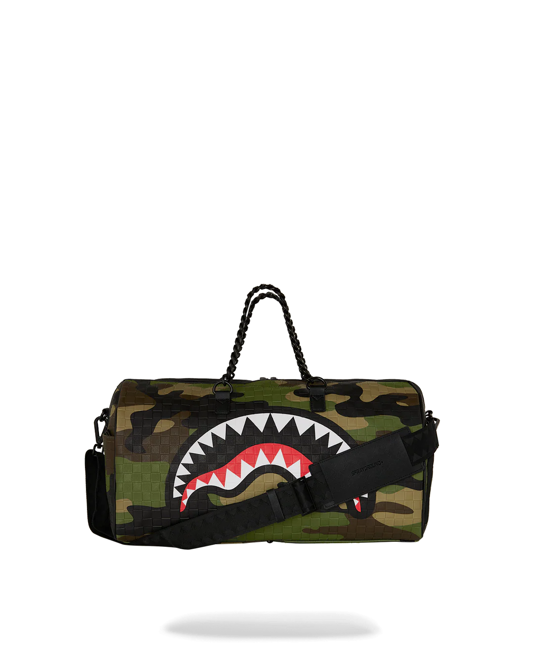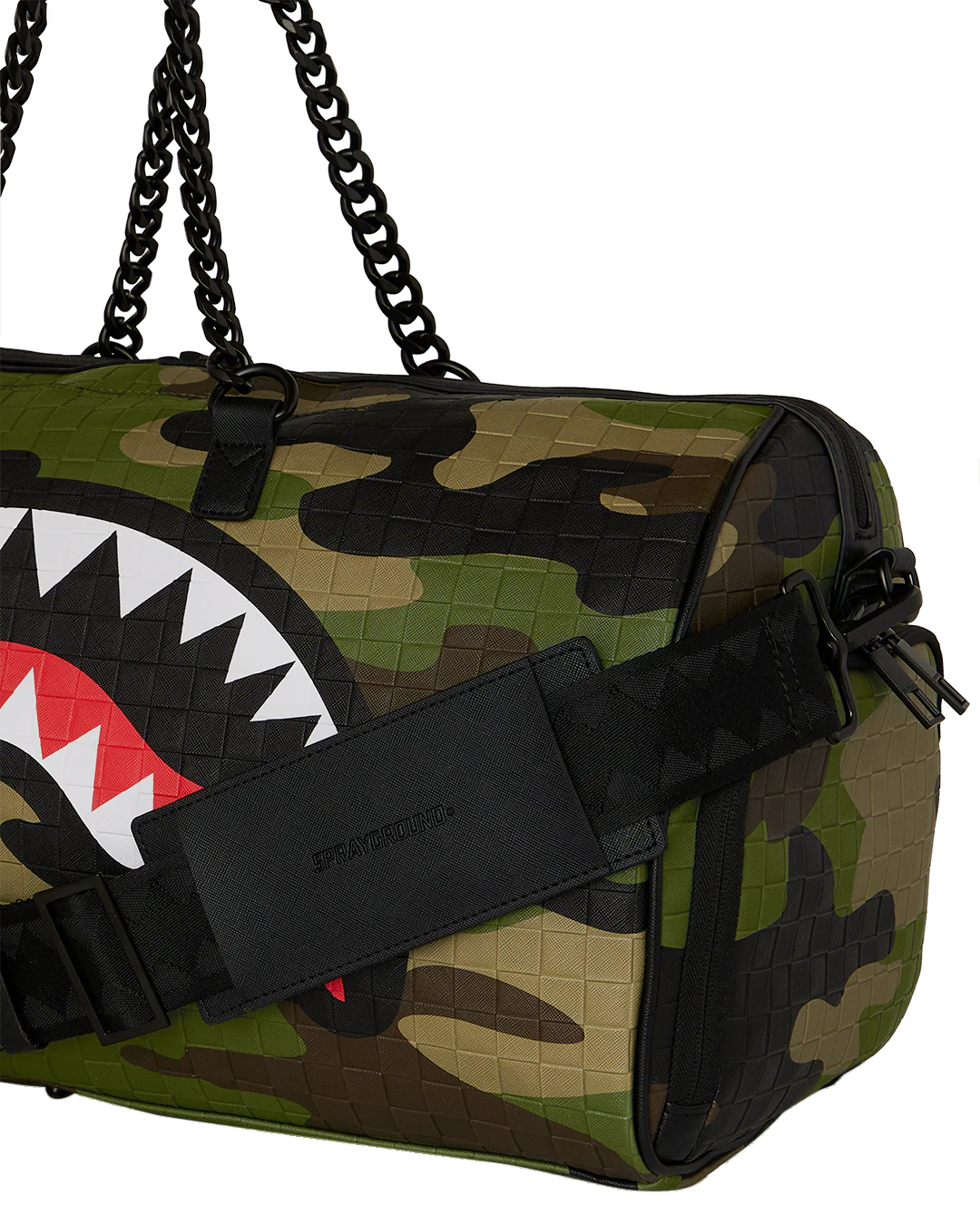 SPRAYGROUND WOODLAND CAMO CHECK CHAIN LARGE DUFFLE
